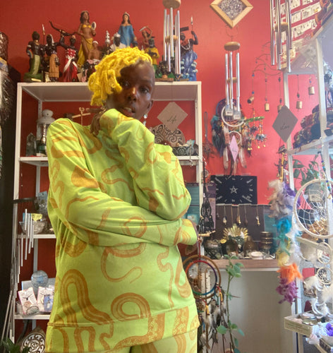 A celebration of every serpent guide of the Diaspora. Filomena, also known as Dominadora, Santa Marta, Mami Wata, Oxumare, Ayida Wedo and so many names, is the protective mother, destroying all that blocks and burdens her child's path. As this spirit is honored the day after my own birthday, I honor her each year with a new manifestation of myself and this collection.